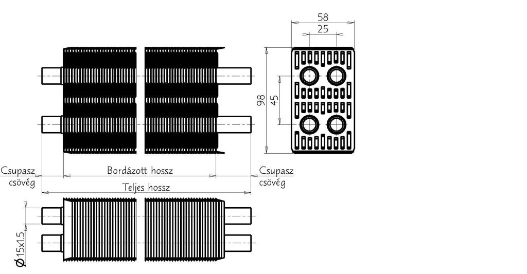 • igen jó ésidőtállófémes kapcsolat a magcső és a bordázat között